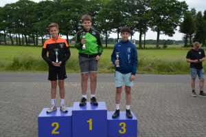 Bij de jongens was het Lars Meenhuis (KV Nooit Gedacht) die twee titels pakte op veld en zetten, waarmee hij de allroundtitel opeiste. Jorn Broekhuis (KV Wilskracht) won het straatonderdeel met een knappe 8 schoten over 61,90 meter. Andere sterke optredens kwamen van Maurits Bruinink (KV Java) en Gijs Borghuis (KV Java), die beiden op het podium eindigden.