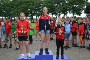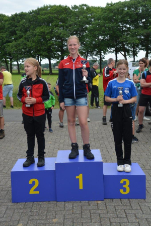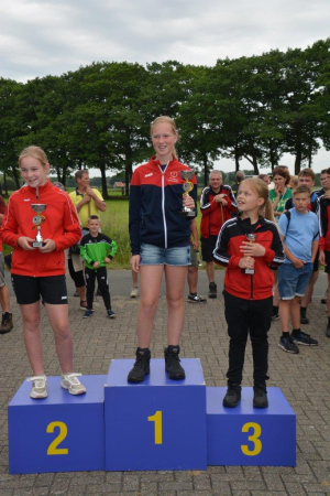 Bij de meisjes was Iris Laarhuis (KV Lattrop-Breklenkamp) ongenaakbaar. Ze won alle drie de onderdelen met ruime marge en mag zich terecht allroundkampioene noemen. Aniek Morsink (KV Ons Streven) en Famke Broekhuis (KV Wilskracht) stonden haar op het podium bij het zetten.